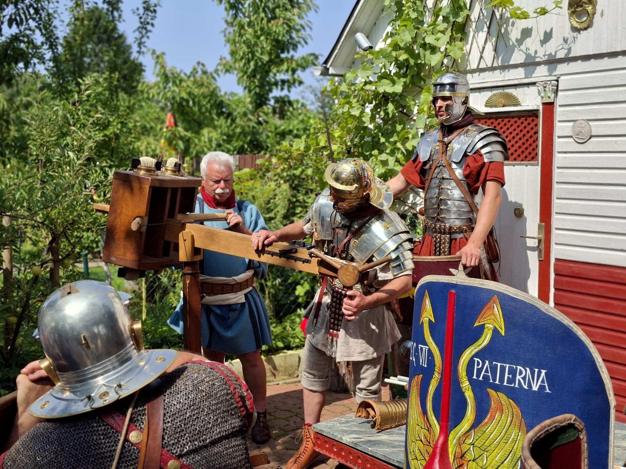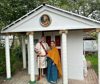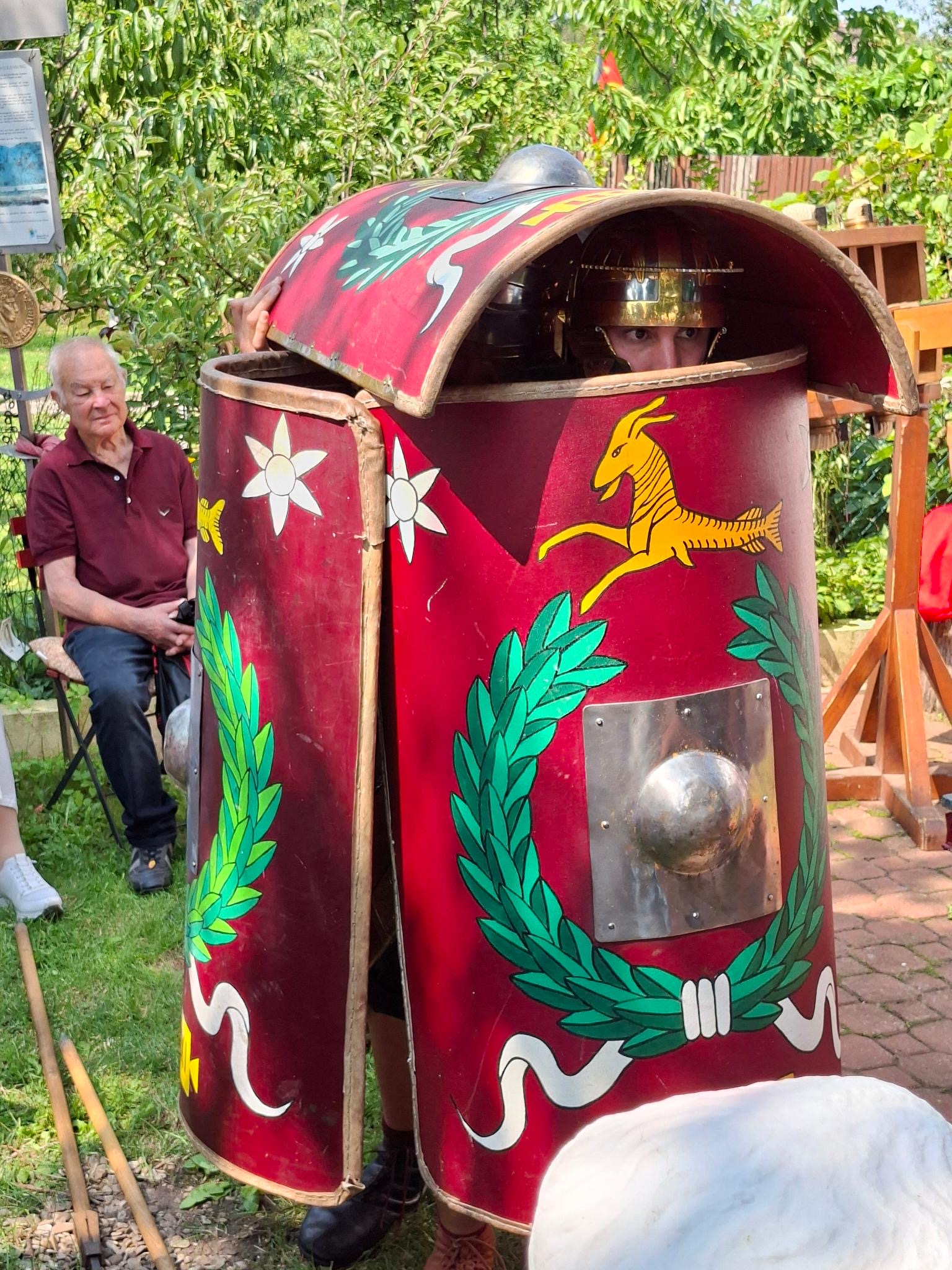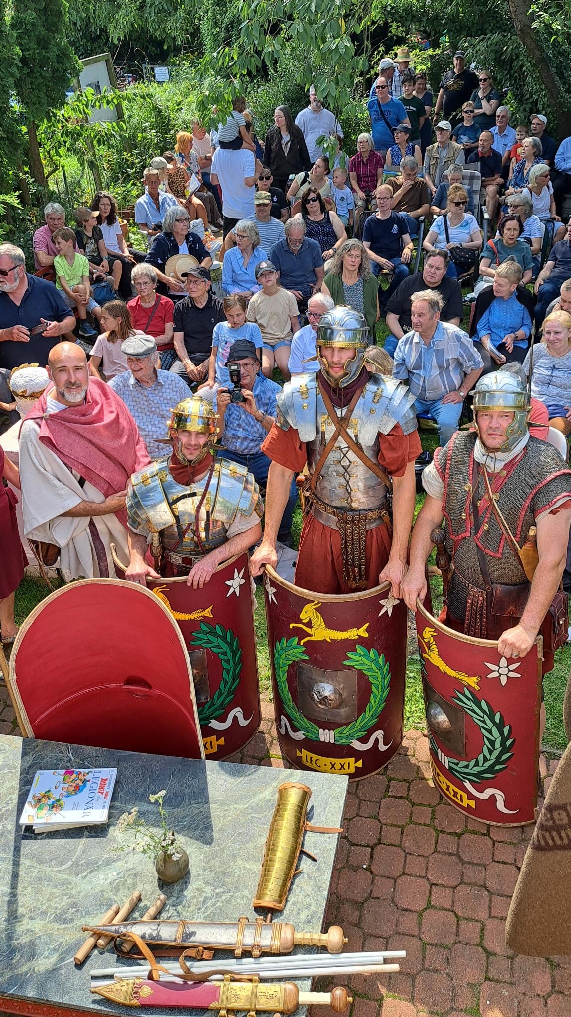 Vertreter der Römer aus Wilkenburg begrüßen Besucher beim Hemminger Stadtfest am Sa 17. Juni 2023. AKTUELL: Im Juli 2025 wurden im Römerlager die neuen verbesserten Informationstafeln aufgestellt (siehe Pressemeldungen).